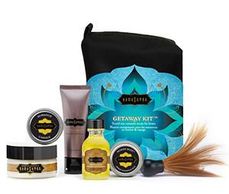 This collection of Kama Sutra products fits nicely into your luggage and carry-on and are perfectly sized under 3.4 oz to meet flight regulatory standards. You'll have everything you need tucked away with this soft, reusable carrier case. Includes .75 oz Vanilla Crème Oil of Love, 1.8 oz French Vanilla Body Soufflé, 1 fl oz Love Liquid Lubricant, 2 oz Sweet Honeysuckle Honey Dust and feather duster, and votive romance candle. *Travel Not Necessary!