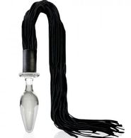 This luxurious glass flogger features genuine bull leather tresses that are soft enough for beginner play, but heavy enough to deliver a firm whack! The smooth glass handle offers a comfortable grip and doubles as a smooth anal plug that features a tapered tip to ease insertion, a bulb that provides extra sensation, and a narrow neck that allows your muscles to wrap around and hold it in. Both